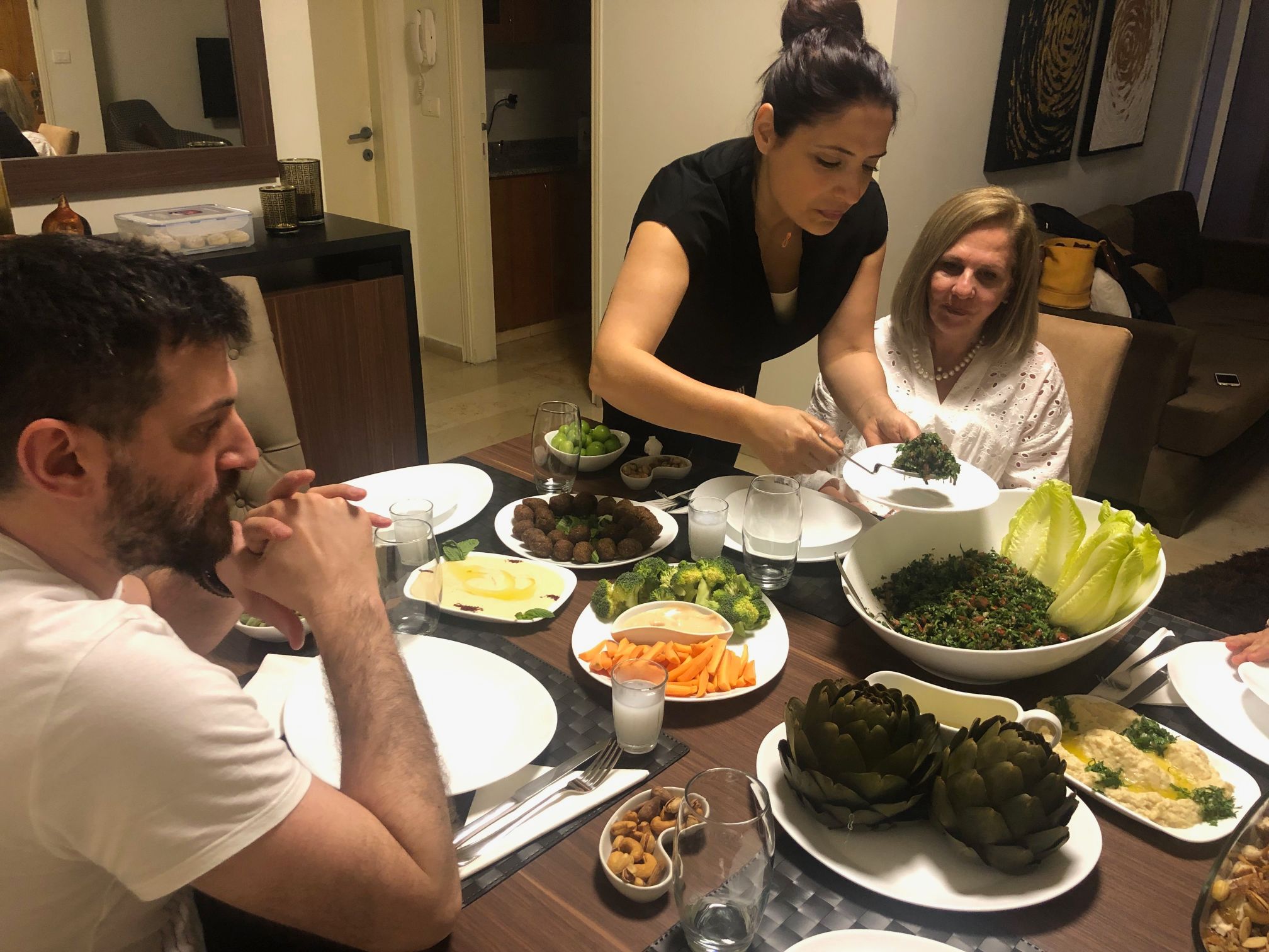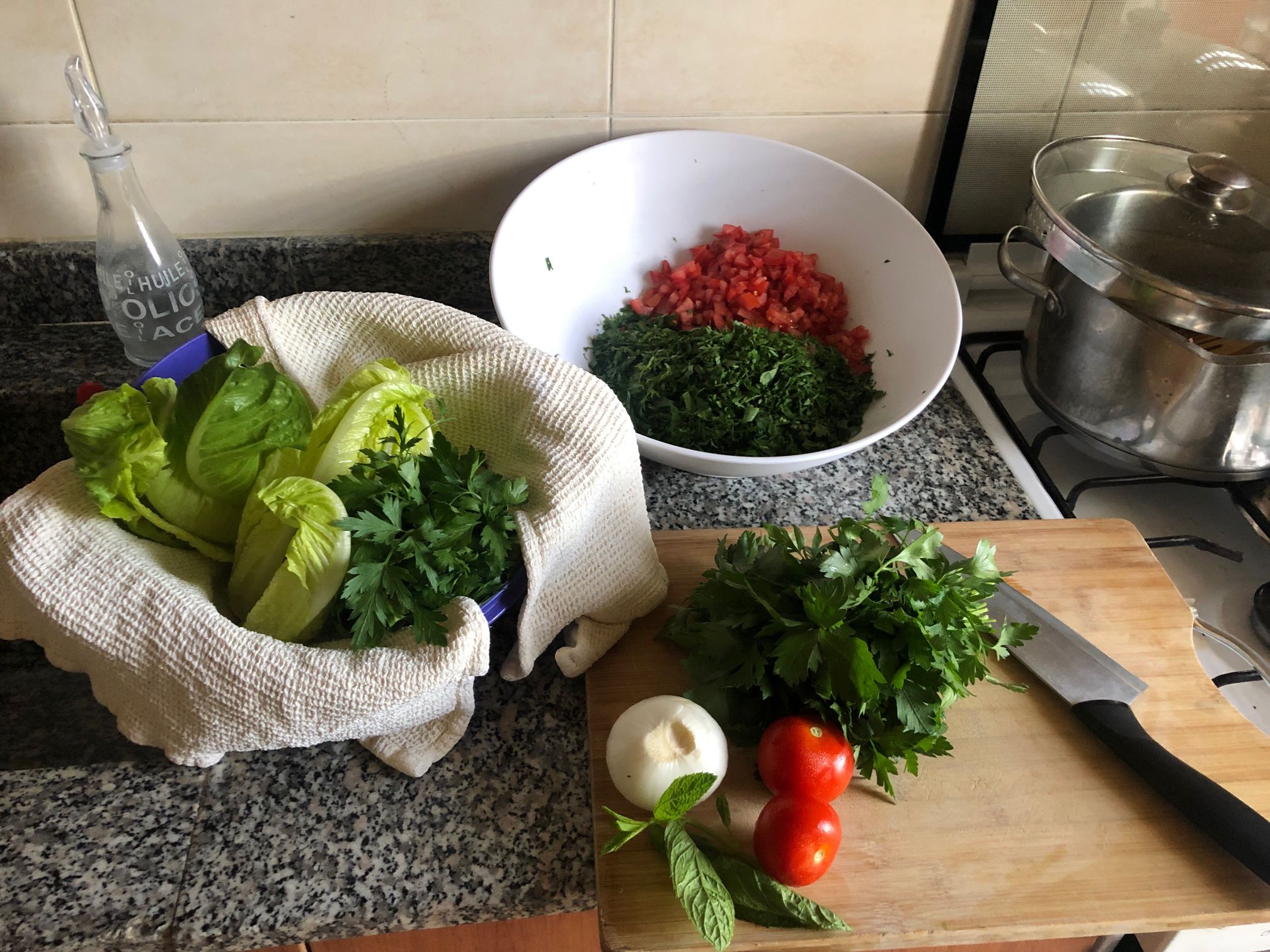 Cooking class with Marie. I am spending four weeks alone in Lebanon and wanted to learn how to cook lebanese food. So I booked an evening with Marie. She welcomed me very warmly to her home. We cooked together Tabouleh, Baba Ghanoush, Hummus and a dish with rice and fish (I don’t remember the name) and for dessert we baked traditional sweets with dates. After cooking we had dinner with two friends of Marie‘s and her daughter. The food was delicious and Marie and her friends were very kind. I enjoyed the evening very much and recommend the experience to anyone.- Cantfindanick February 12, 2020