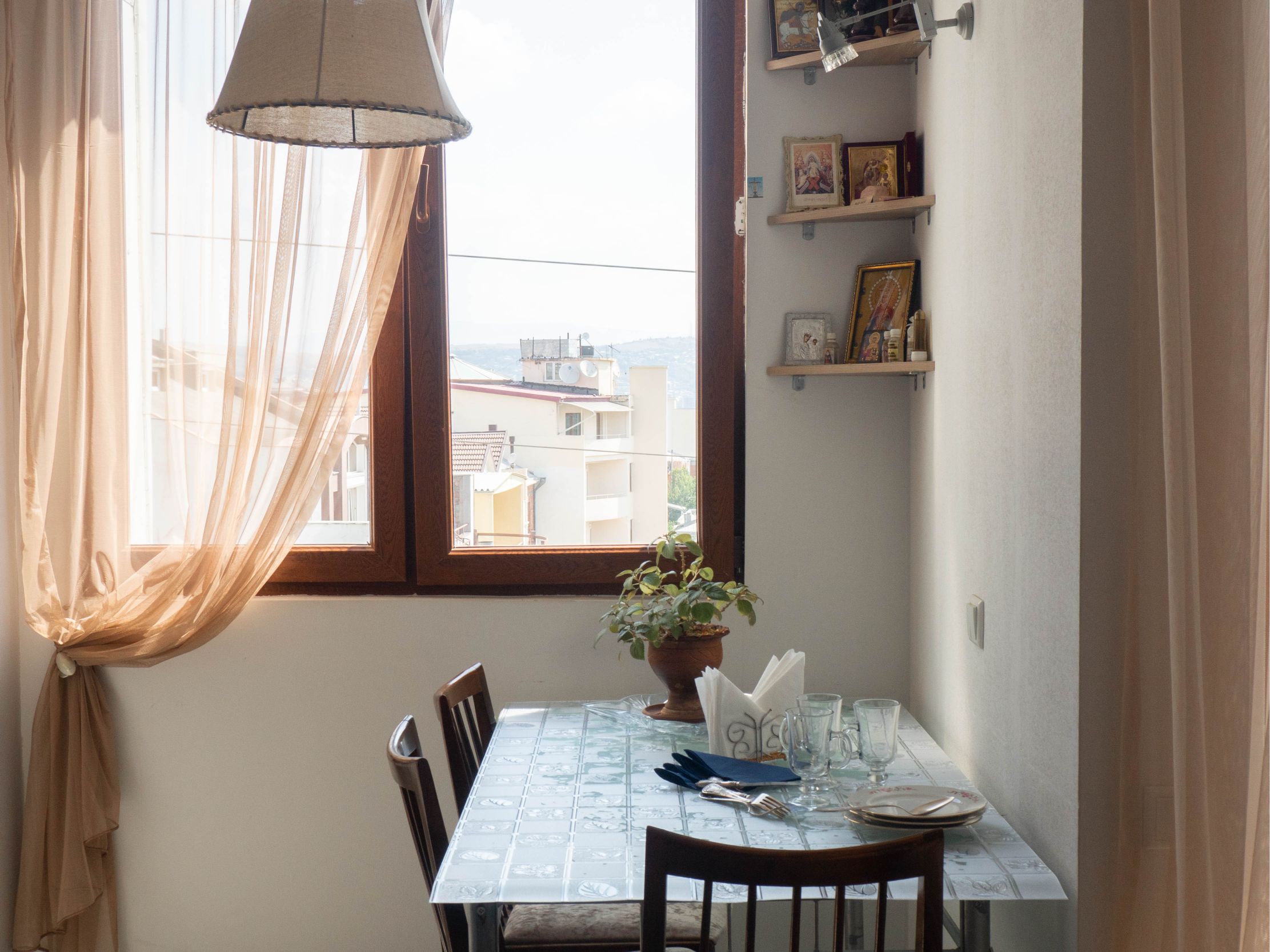 Notes: Lasha and Elene can offer vegetarian meals on request. Their apartment is on the 4th floor, so until they get a lift installed (one is being built into the building), it might not be great for guests with limited mobility. Please note that while there is currently no air conditioning (they will have it installed in the summer of 2020) the temperature in the apartment is pleasant.