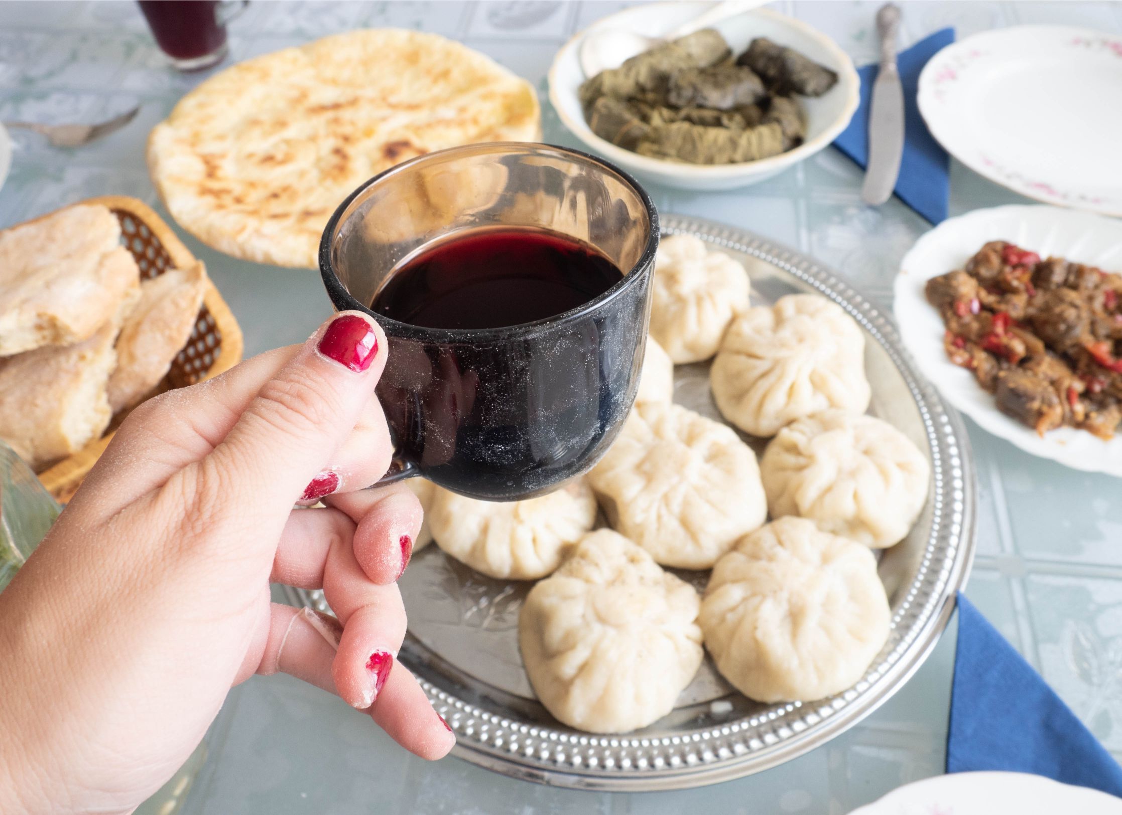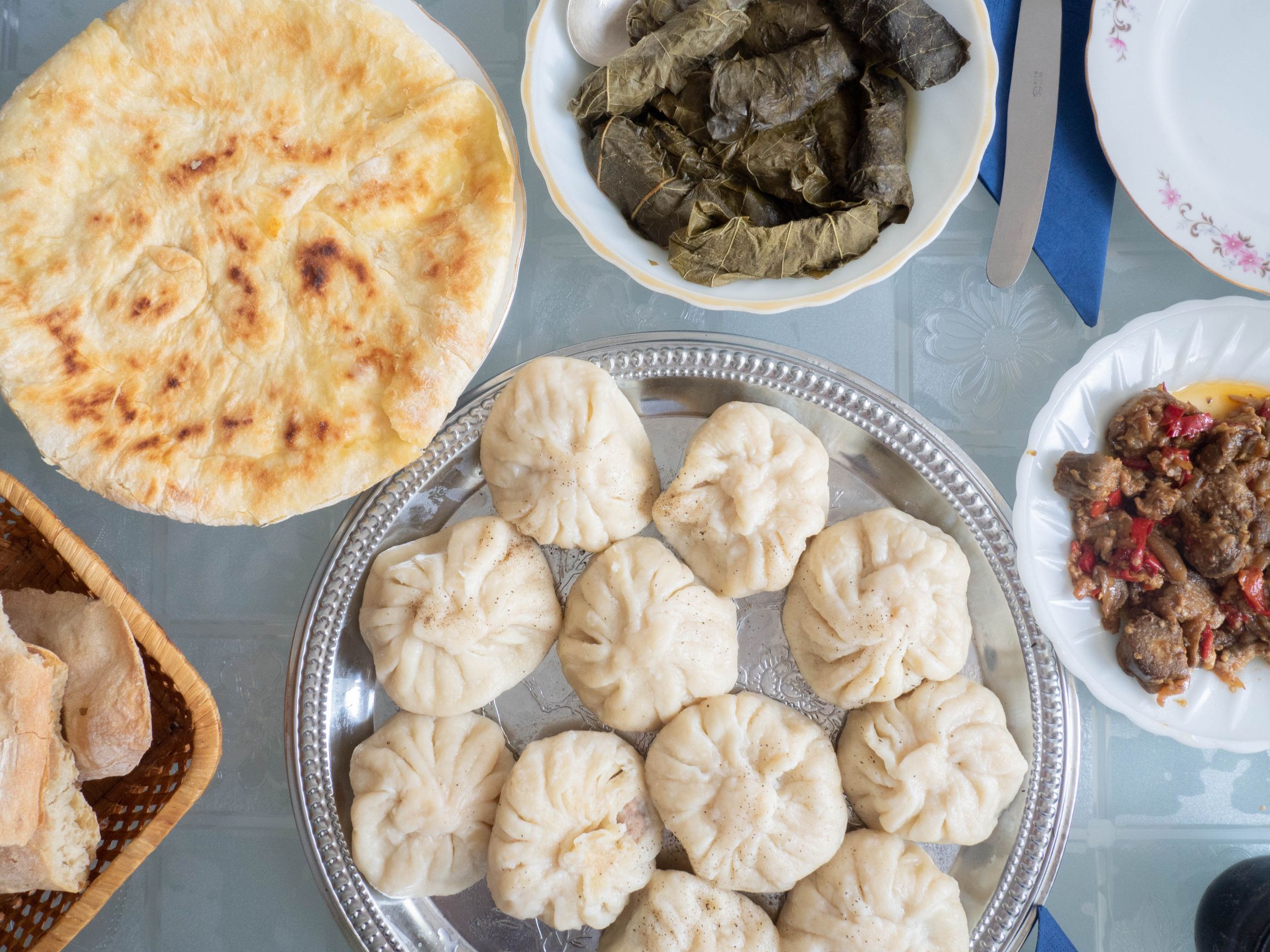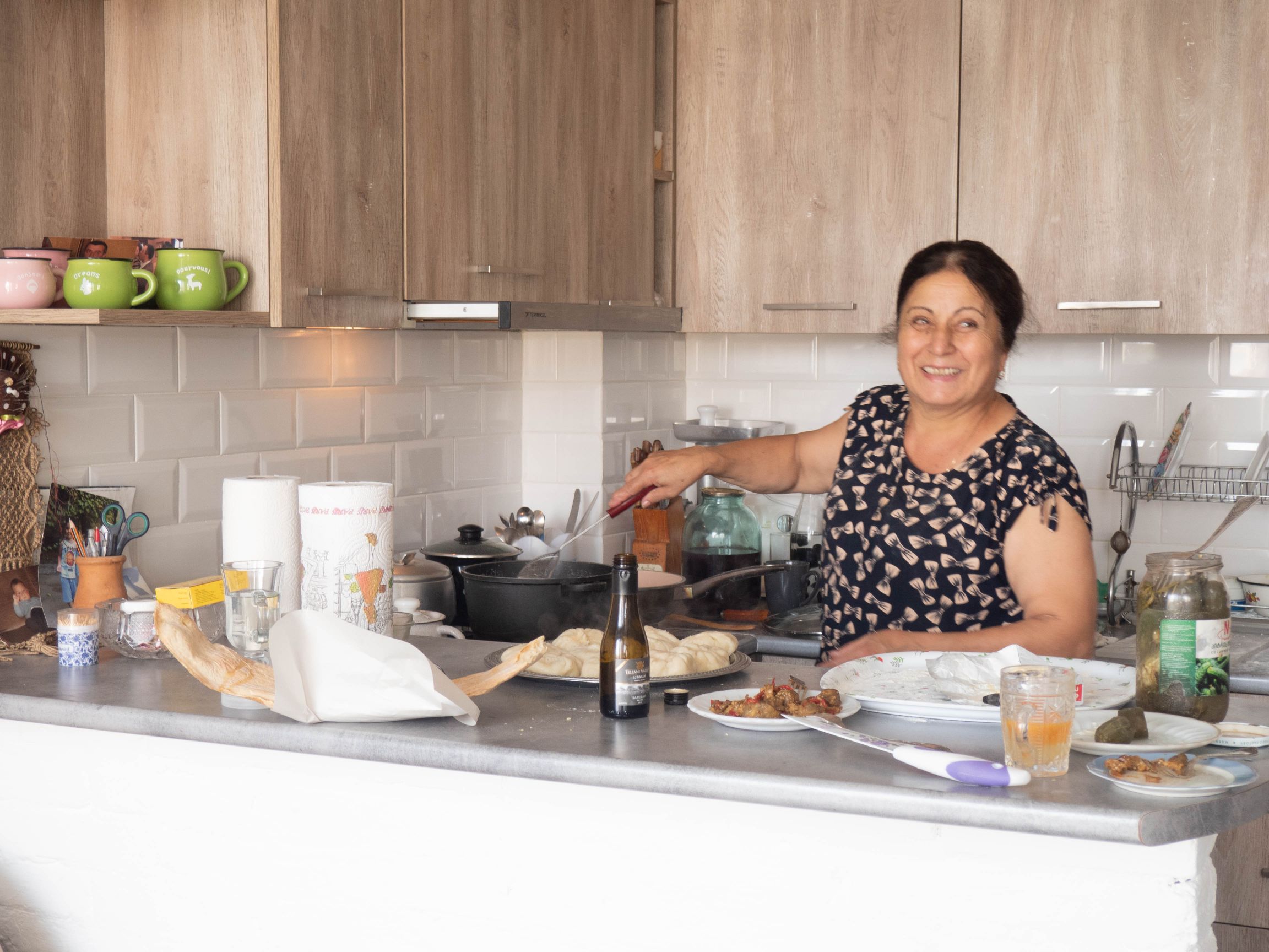 In-home meal: (1-4 guests) Elene will welcome you into her newly built apartment building. While sparsely decorated, her apartment is cozy and welcoming with lots of natural light and a view. You will be entertained by Lasha’s anecdotes about living in Georgia, while you share a traditional Georgian meal prepared by Elene at their dining table. Your menu might include dishes such as eggplant, dolma (stuffed grape leaves), khinkali (Georgian dumpling) and imeruli khachapuri (cheese bread), which will be served with homemade wine from the Kakheti region. Your meal concludes with a dessert such as pelamushi (a Georgian dessert porridge made with flour and pressed, condensed grape juice) that you will enjoy while listening to Lasha’s favorite Georgian music.